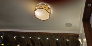 We create innovative ceiling aesthetics using materials like PVC, gypsum, and POP, integrated with customized ambient and profile lighting setups for a refined finish.